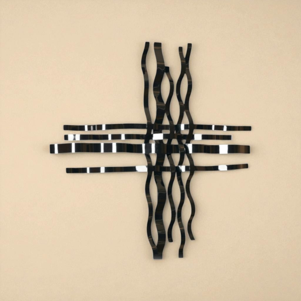 Siyah statik boyalı sac levha şeritlerden oluşmuş amorf bir kompozisyondan oluşmaktadır.
