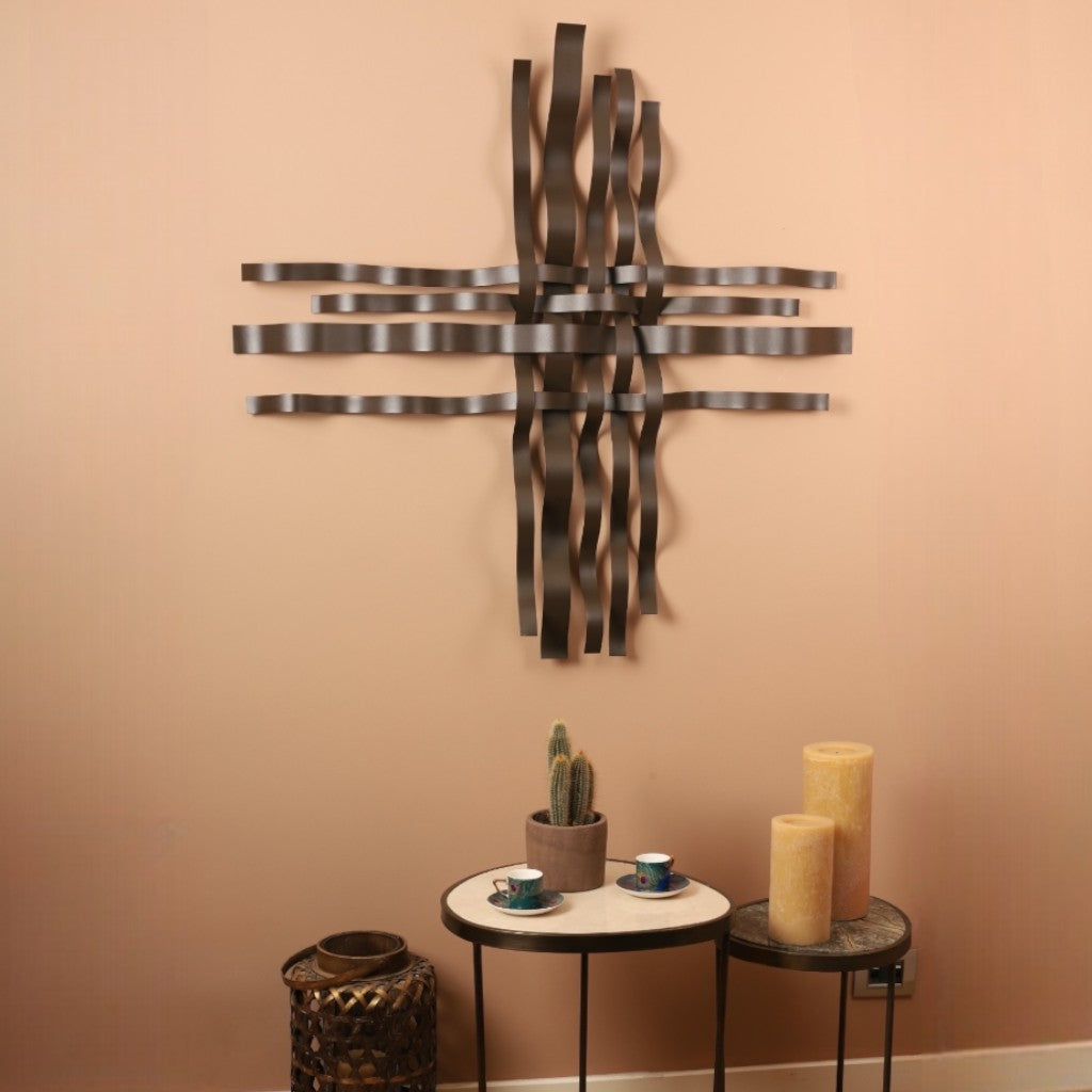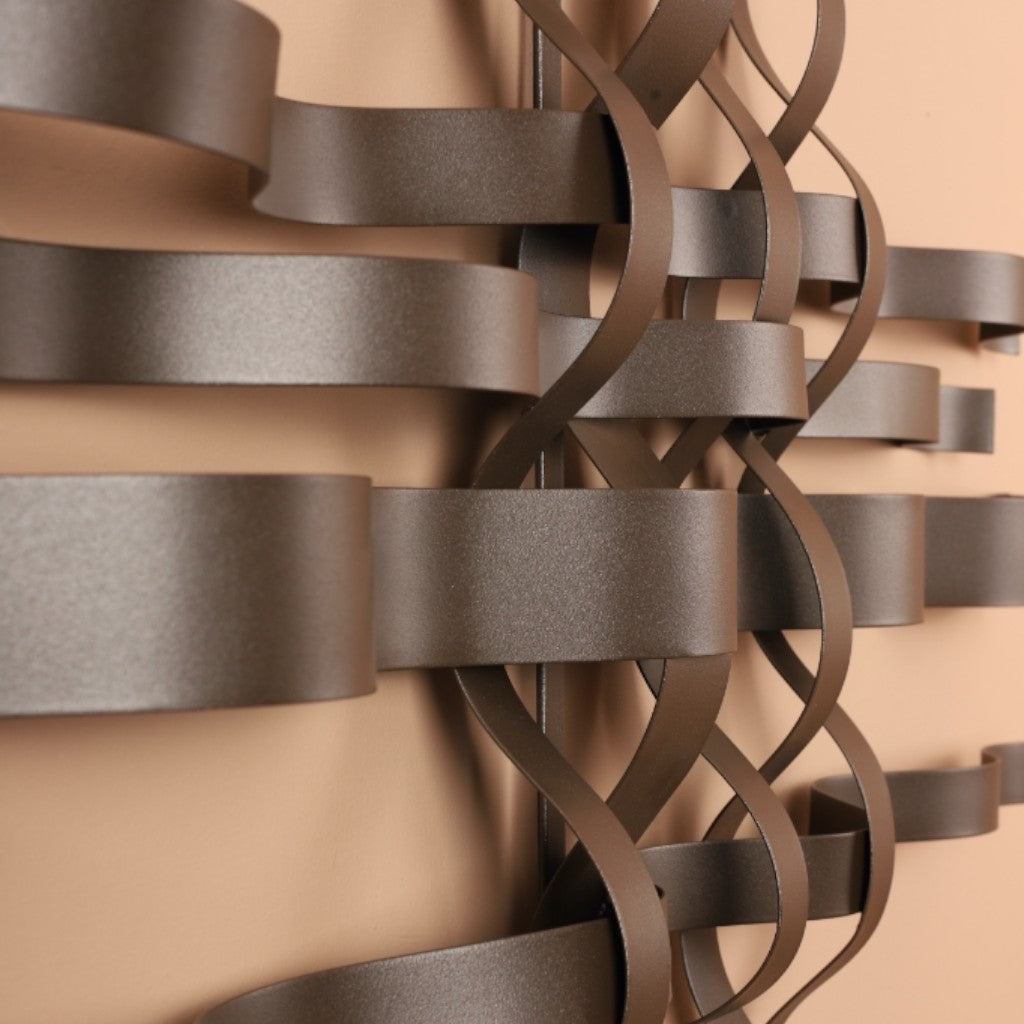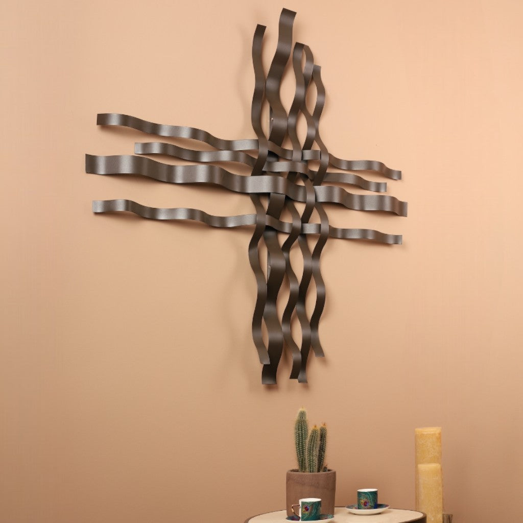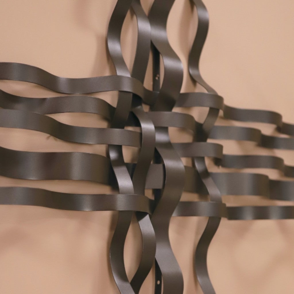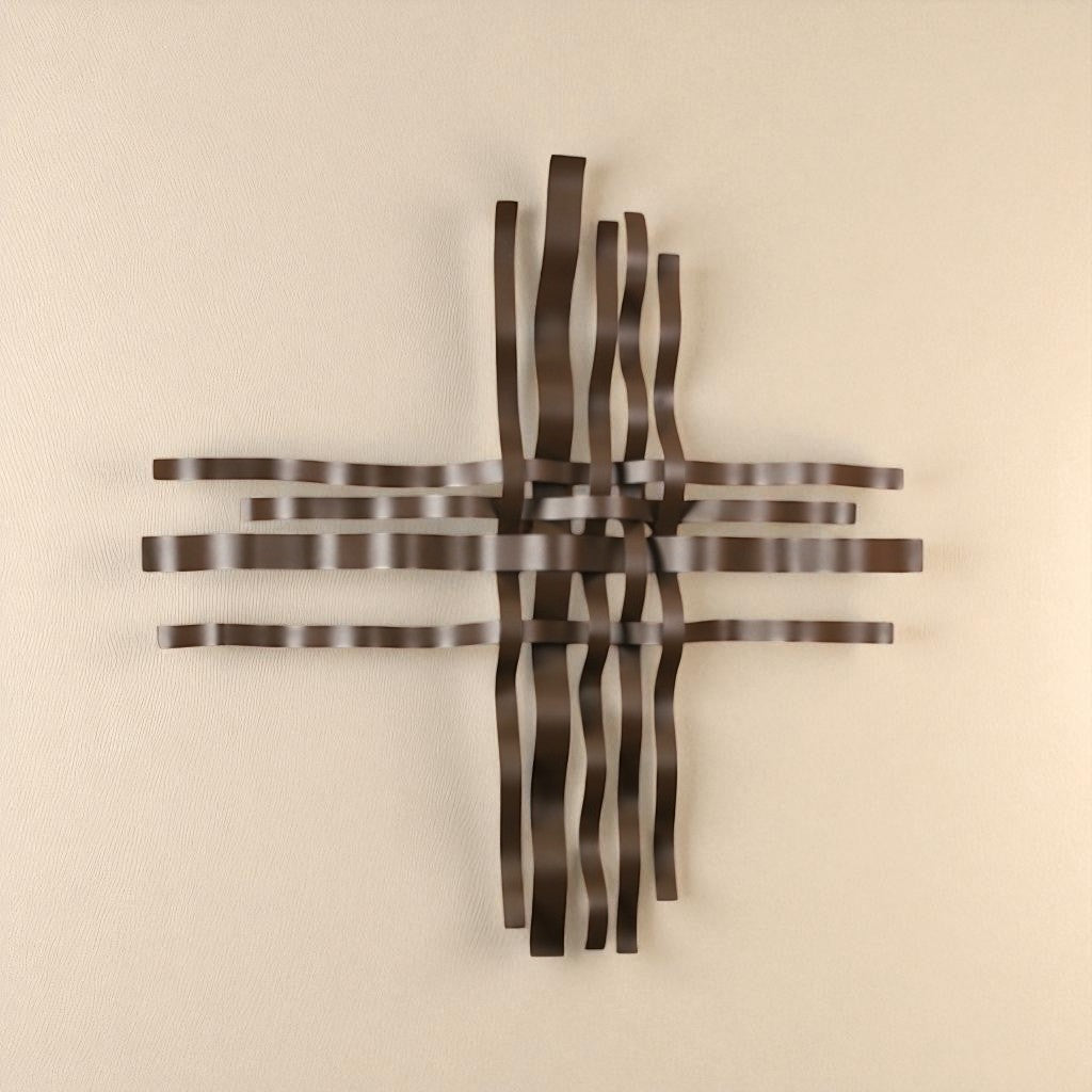 Kahverengi statik boyalı sac levha şeritlerden oluşmuş amorf bir kompozisyondan oluşmaktadır.