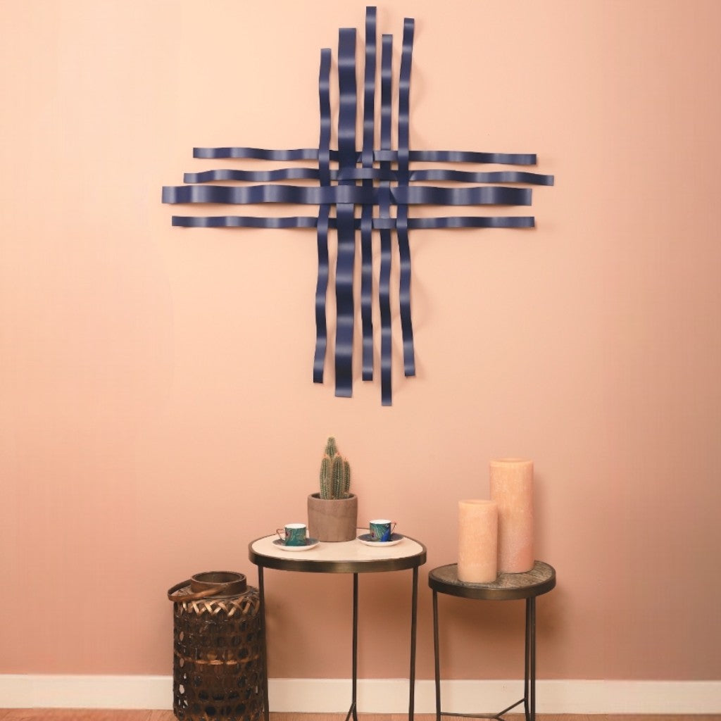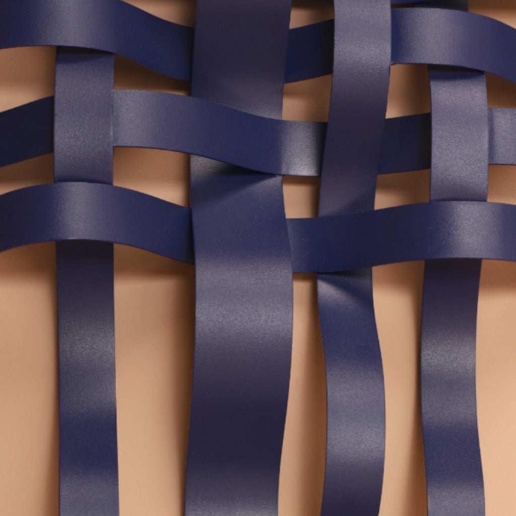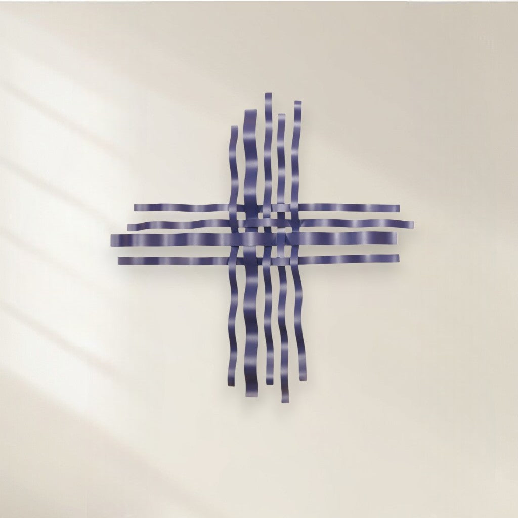 Lacivert renkte statik boyalı sac levha şeritlerden oluşmuş amorf bir kompozisyondan oluşmaktadır.