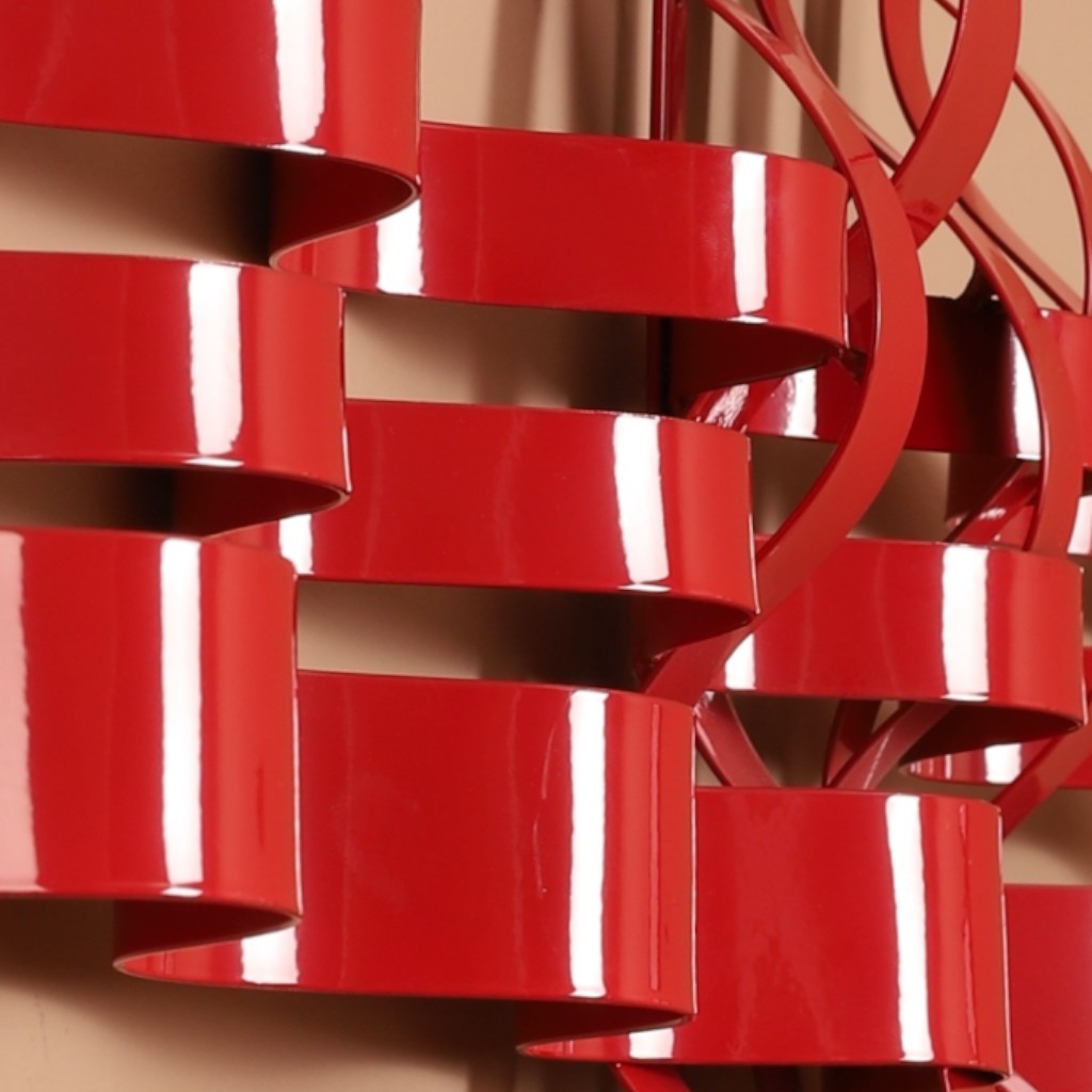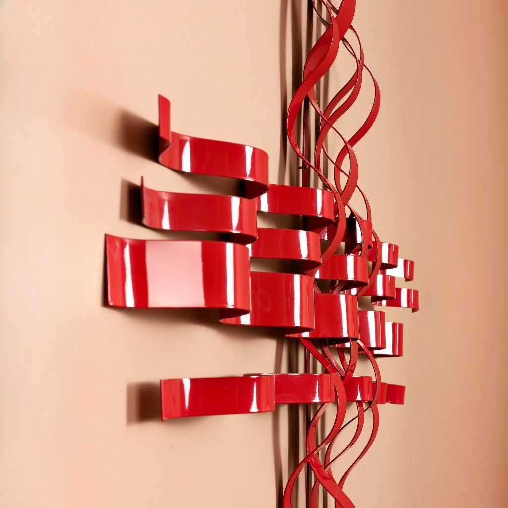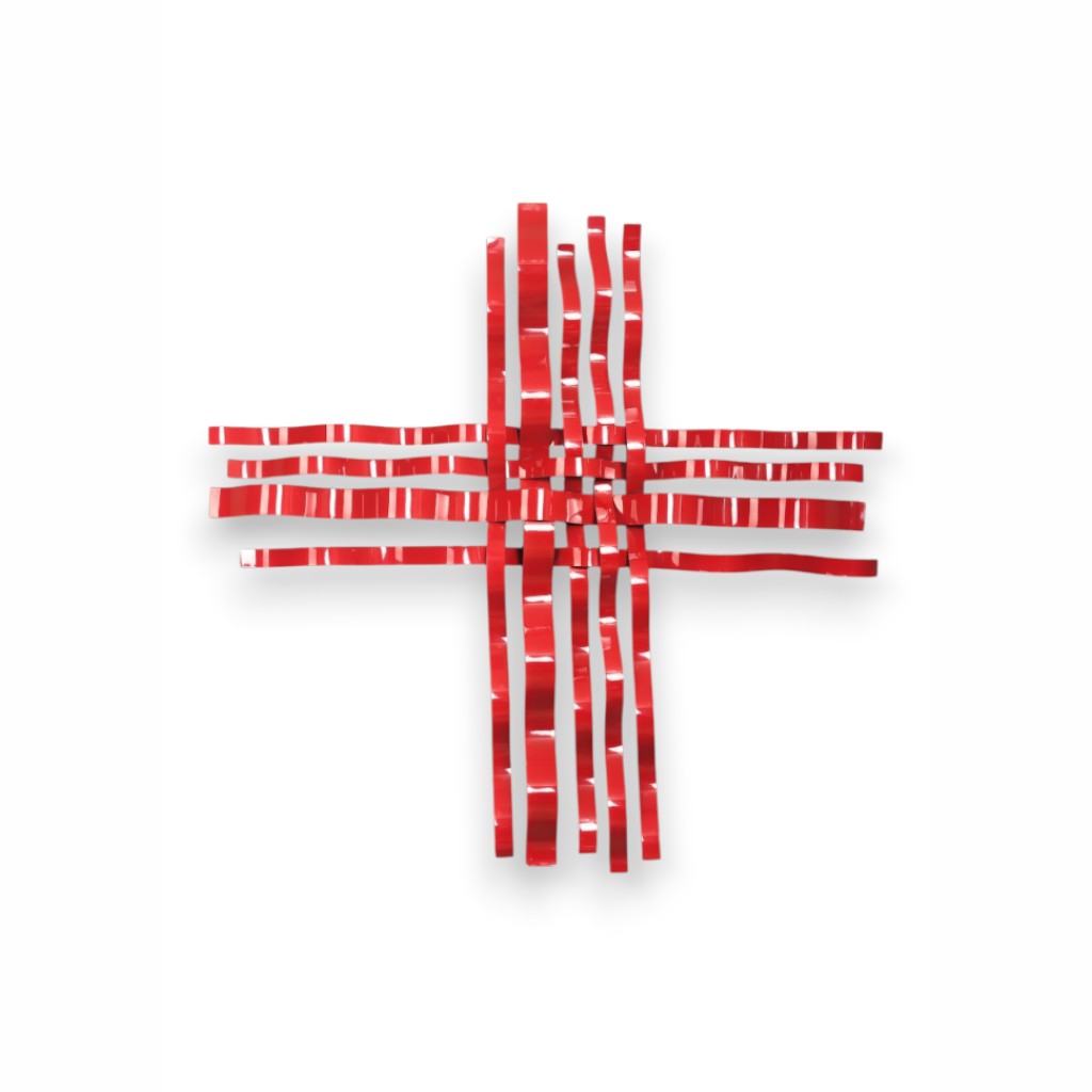 Kırmızı renkte statik boyalı sac levha şeritlerden oluşmuş amorf bir kompozisyondan oluşmaktadır.