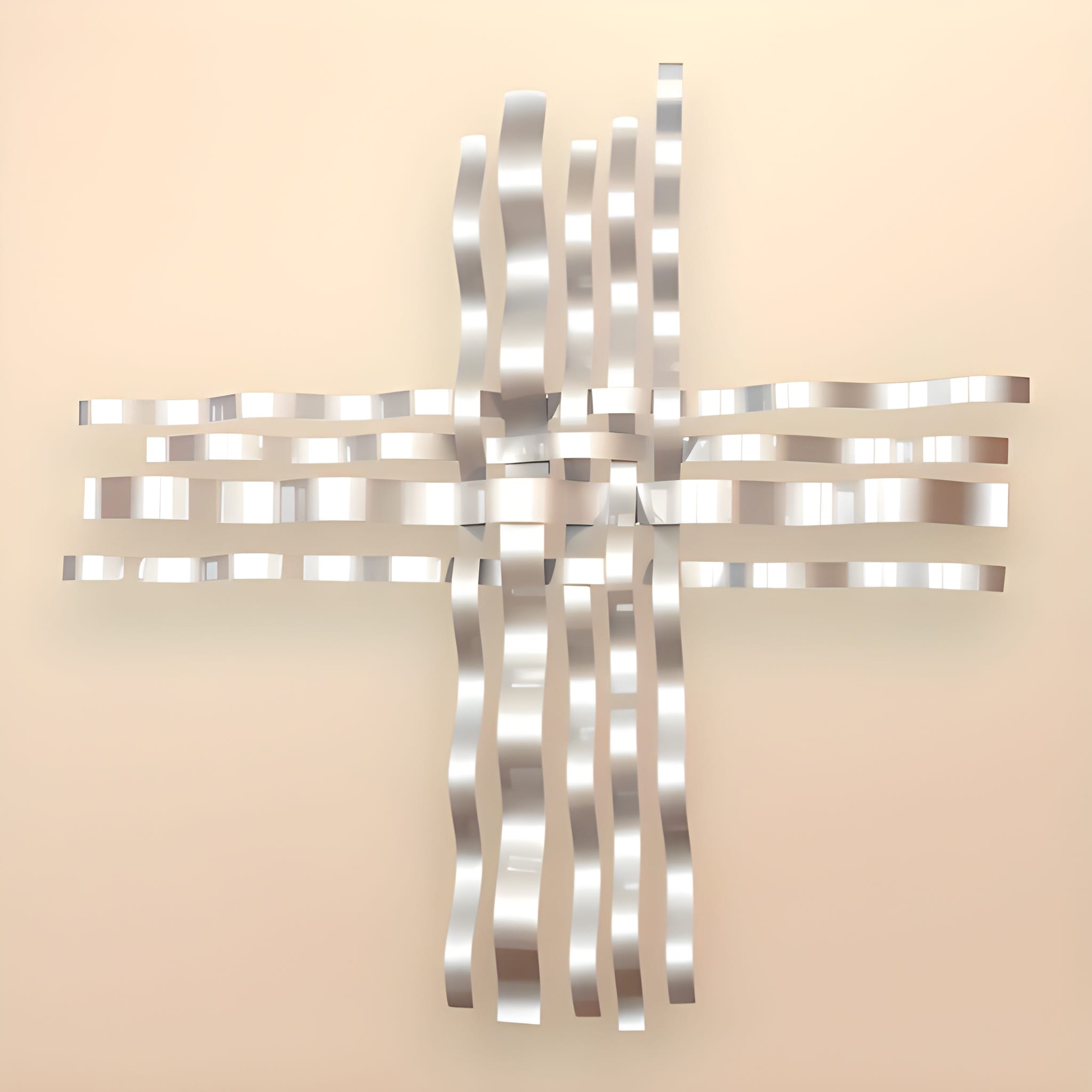 Gümüş renkte statik boyalı sac levha şeritlerden oluşmuş amorf bir kompozisyondan oluşmaktadır.