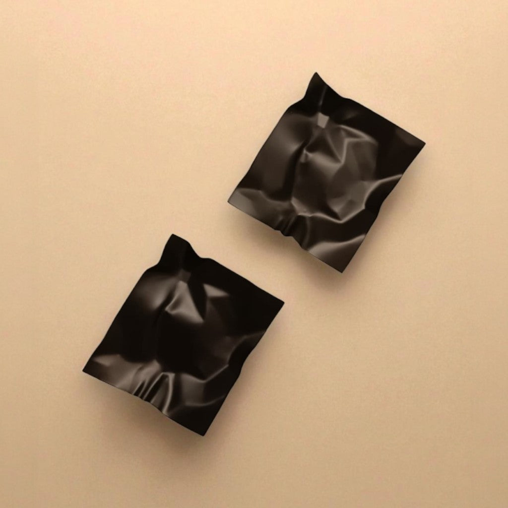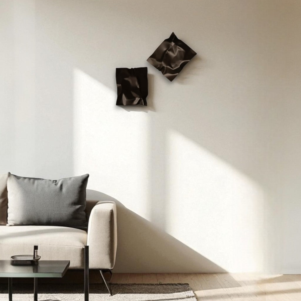 Buruşuk kağıt formunda, mat siyah renkte paslanmaz çelik malzemeden oluşturulmuş 2'li settir.