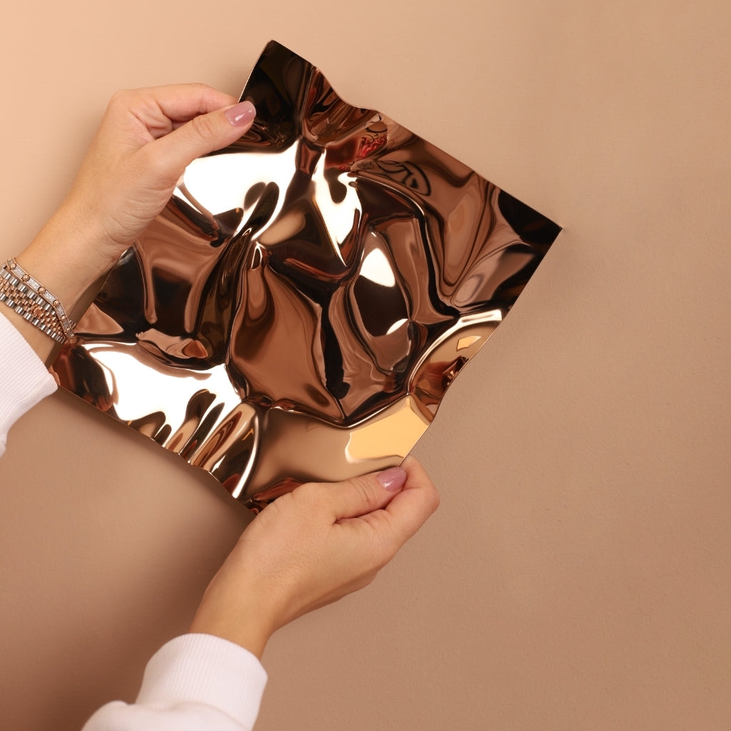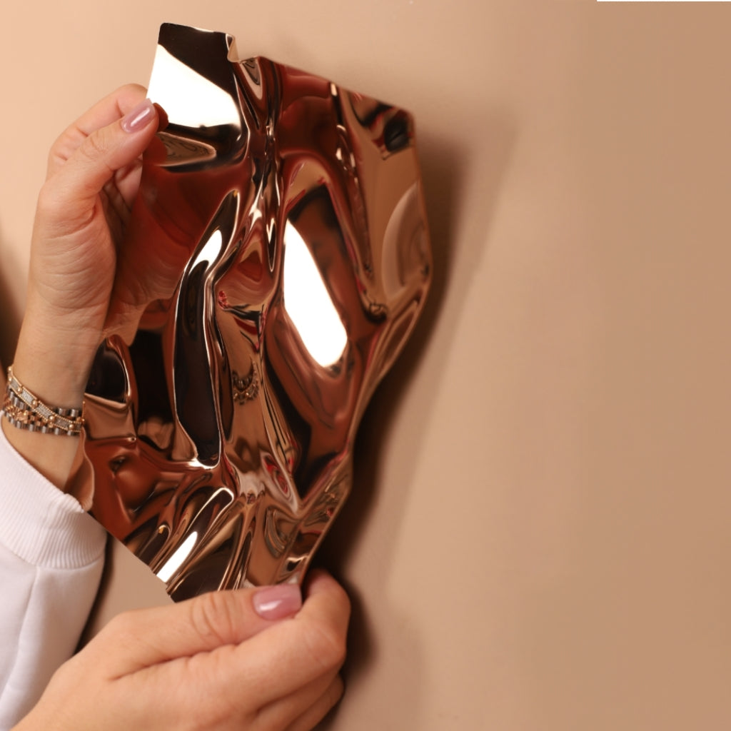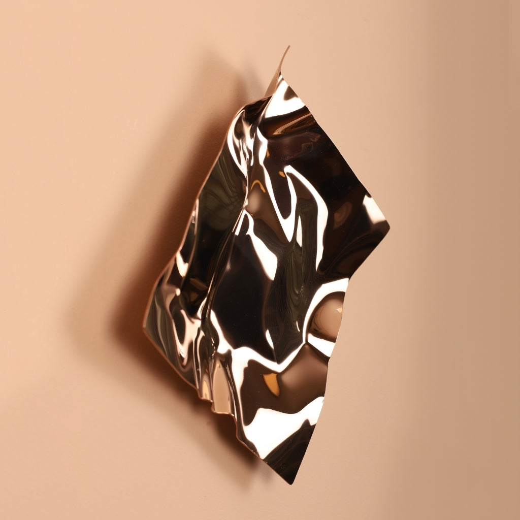 Buruşuk kağıt formunda tasarlanmış bronz renkte duvar aksesuar ürünüdür.