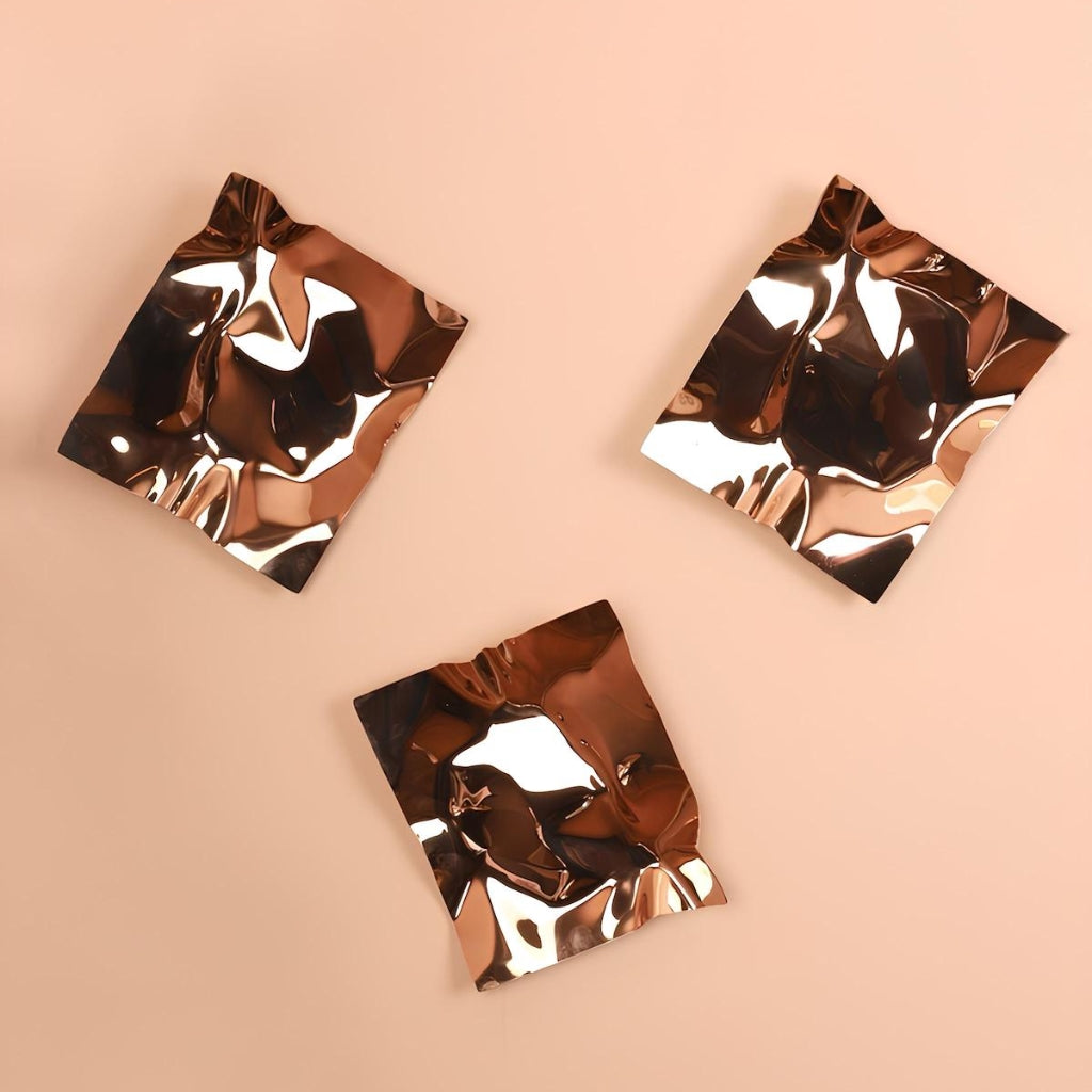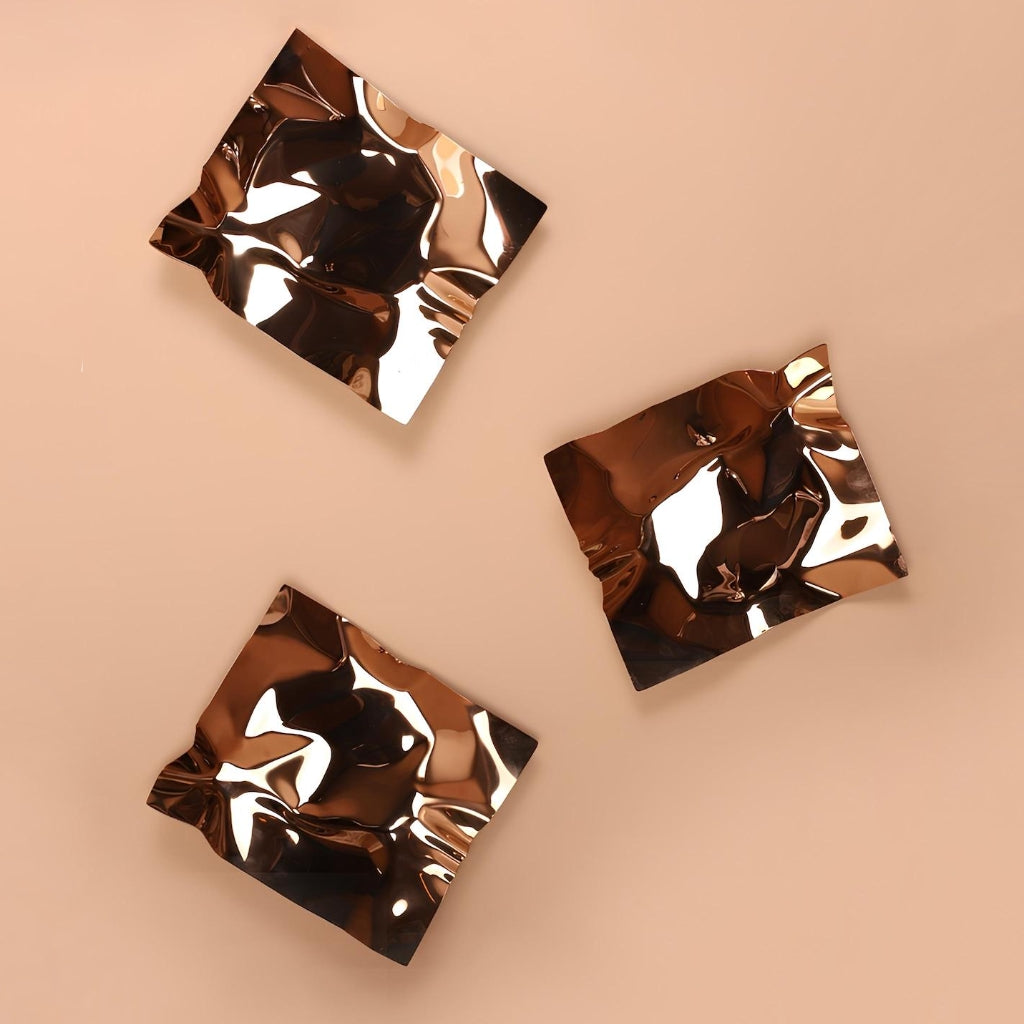 Buruşuk kağıt formunda tasarlanmış bronz renkte 3'lü setten oluşmaktadır.