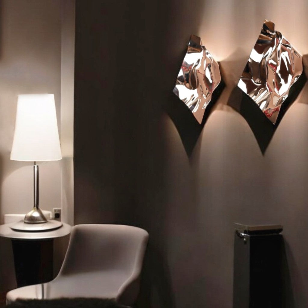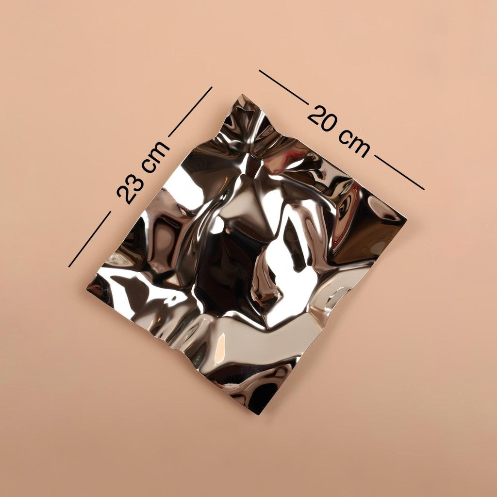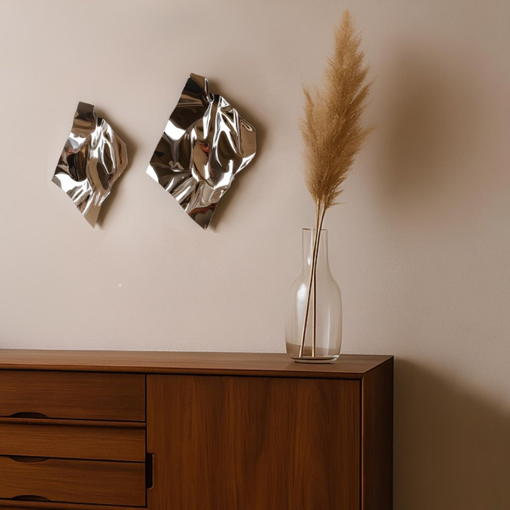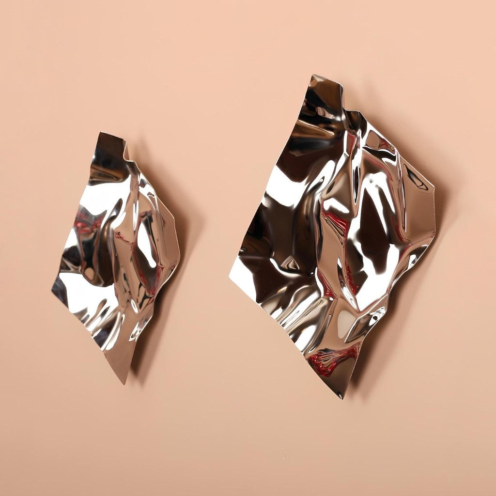 Buruşuk kağıt formunda, gümüş renkte paslanmaz çelik malzemeden oluşturulmuş 2'li settir.