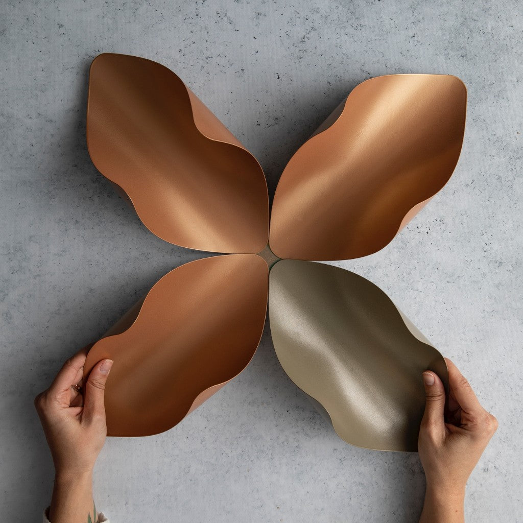28,5 cm uzunluğunda çapraz şekilde birleştirilmiş demir profil üzerine 4 adet "Leaves" ürününün yerleştirilmesiyle oluşturulmuştur.