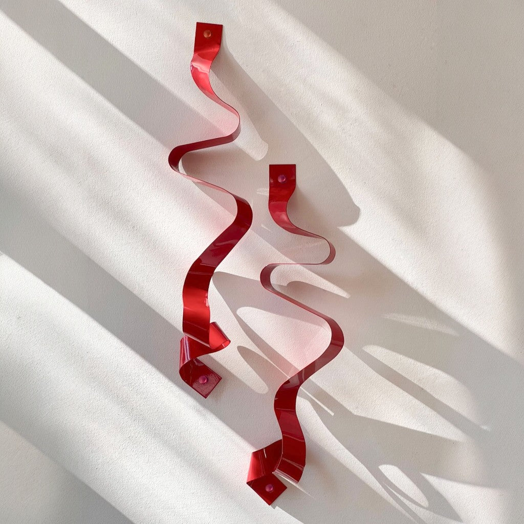 Kırmızı statik boyalı 5 cm enindeki sac levha şeritlerin kıvrımlı forma getirilmesiyle 2’li set olarak tasarlanmıştır.