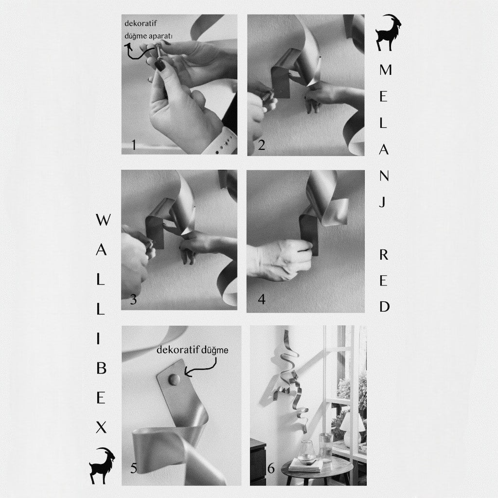 Ürünün alt ve üst kısımlarında bulunan deliklerden dübel ve çivi kullanarak duvara monte edilir. Uygulama noktaları üzerine ürün ile birlikte yollanan dekoratif düğme formundaki parça yerleştirilir. Kuru bezle temizlenebilir.
