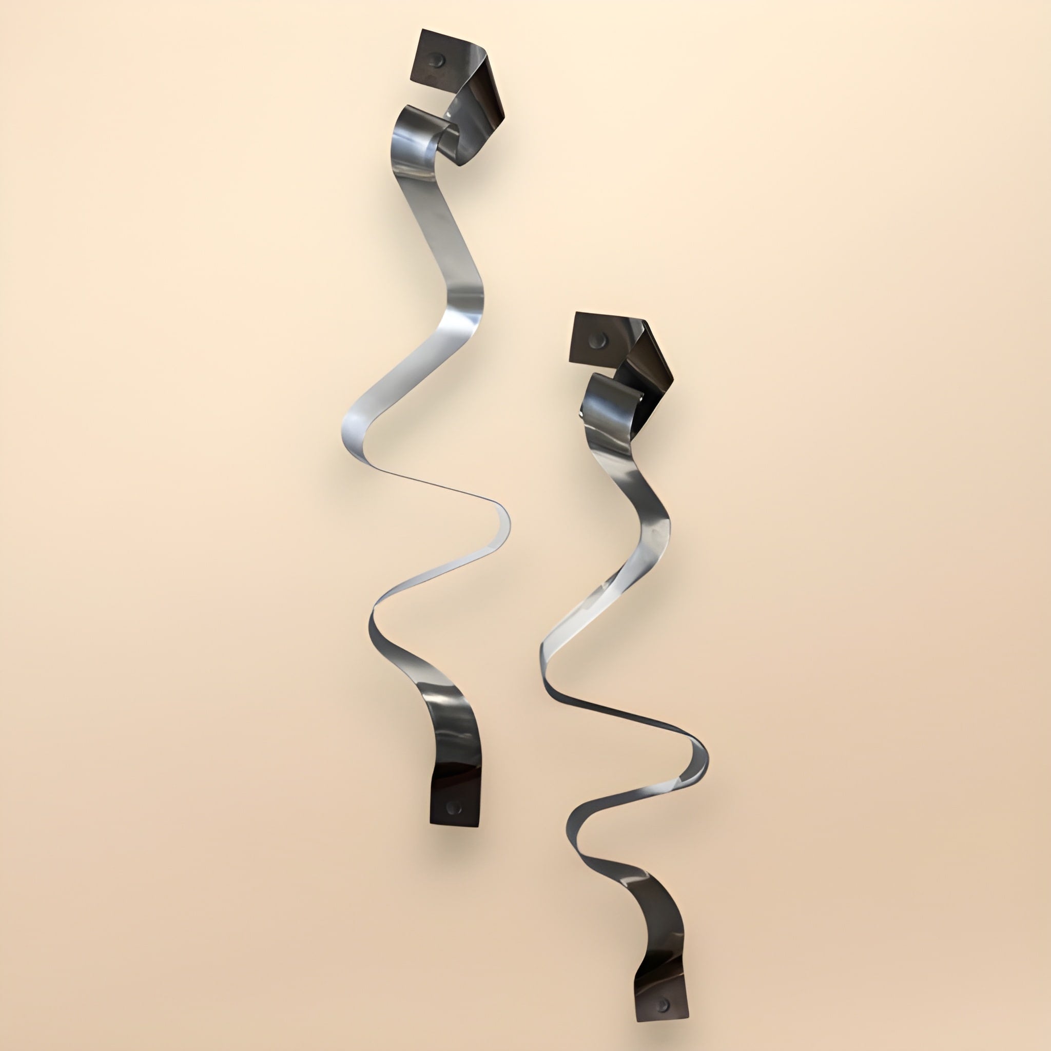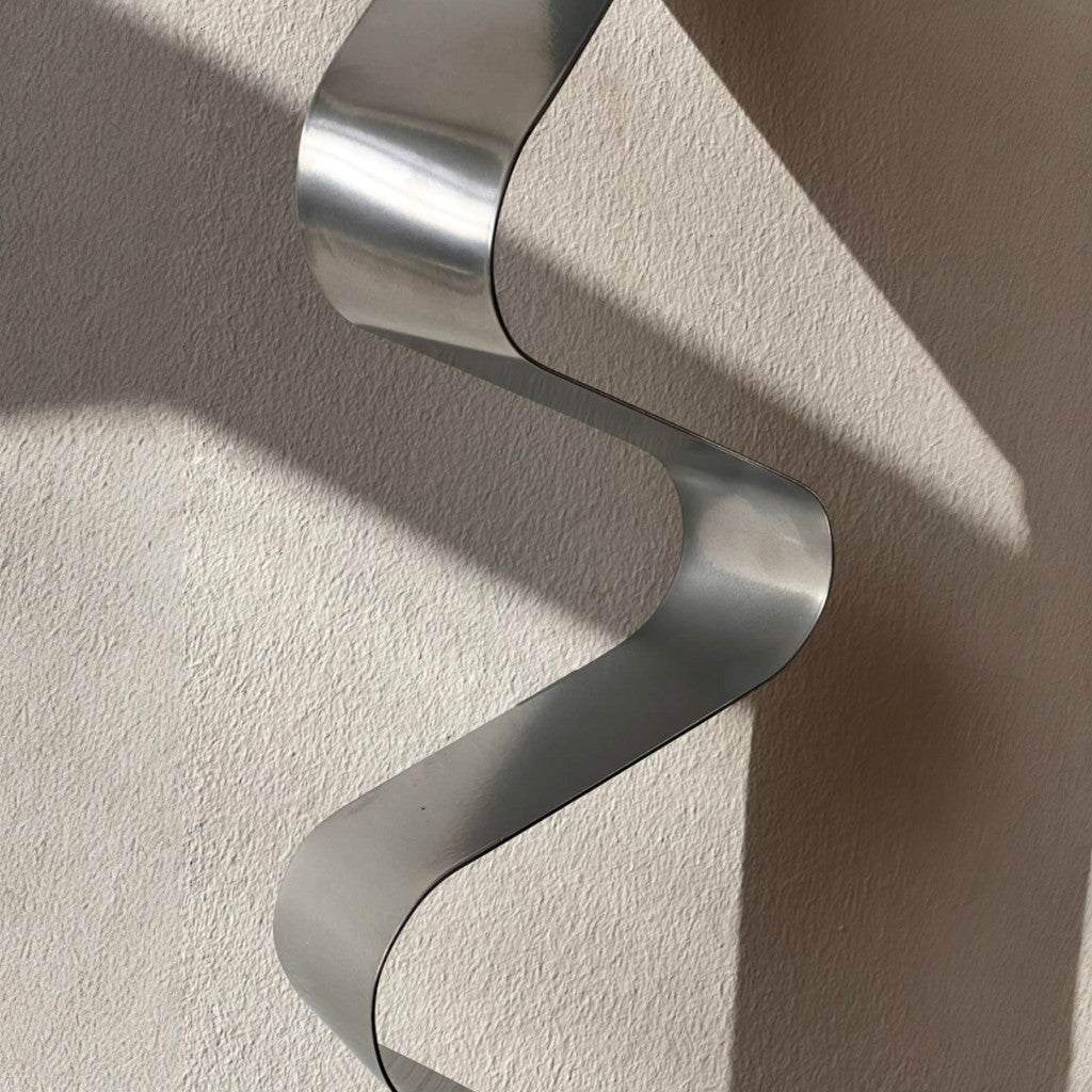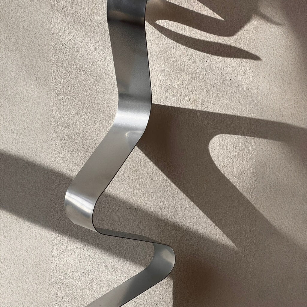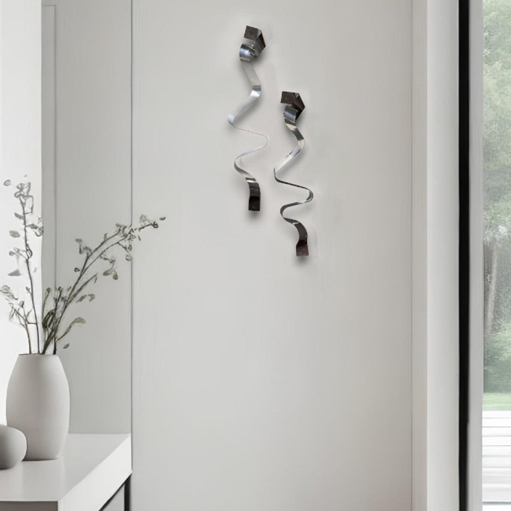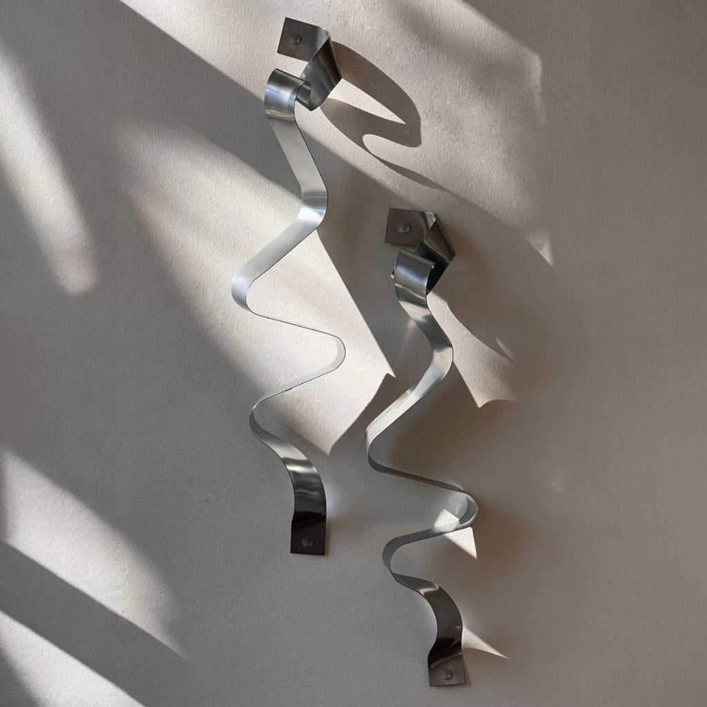 Gümüş statik boyalı 5 cm enindeki sac levha şeritlerin kıvrımlı forma getirilmesiyle 2’li set olarak tasarlanmıştır.