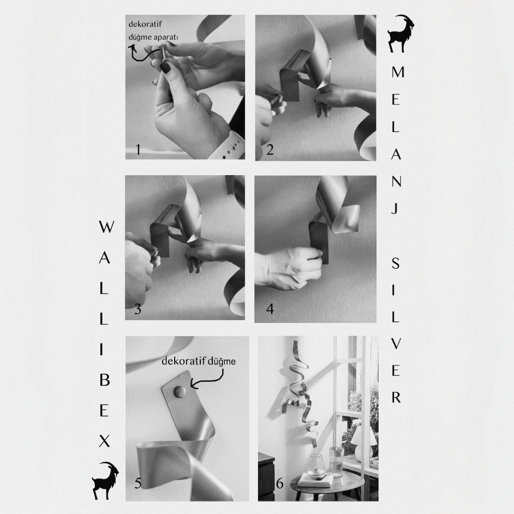 Ürünün alt ve üst kısımlarında bulunan deliklerden dübel ve çivi kullanarak duvara monte edilir. Uygulama noktaları üzerine ürün ile birlikte yollanan dekoratif düğme formundaki parça yerleştirilir. Kuru bezle temizlenebilir.