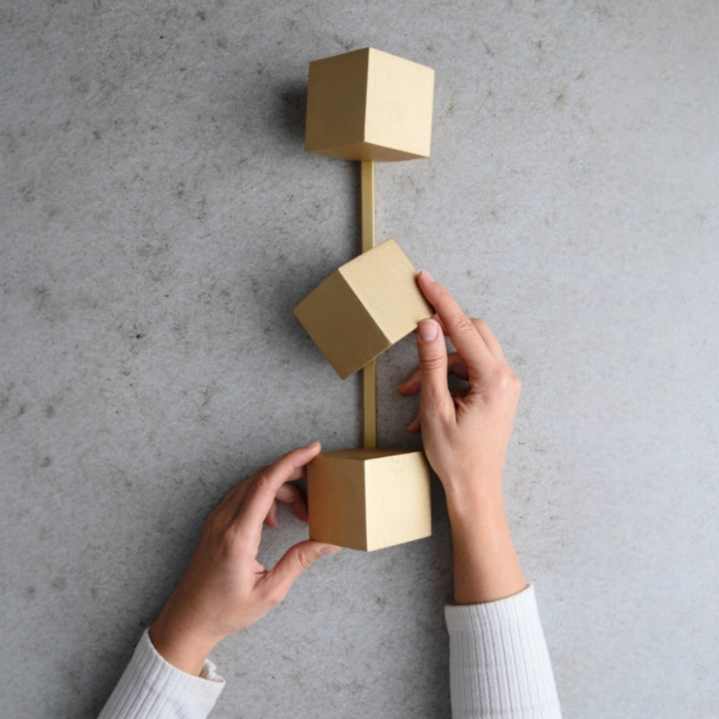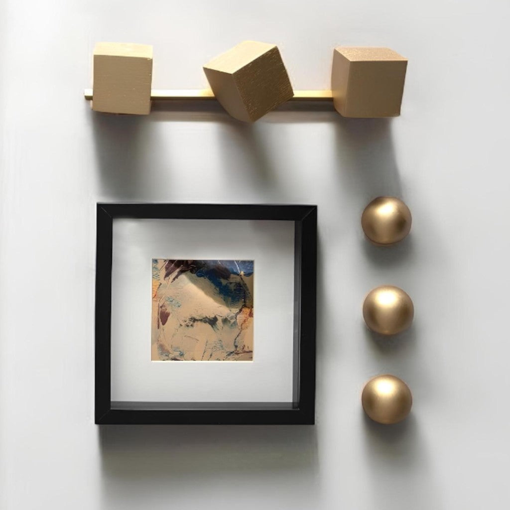 - 30 cm uzunluğunda demir profil üzeri 3 adet çapraz kesim gold renkli küp.