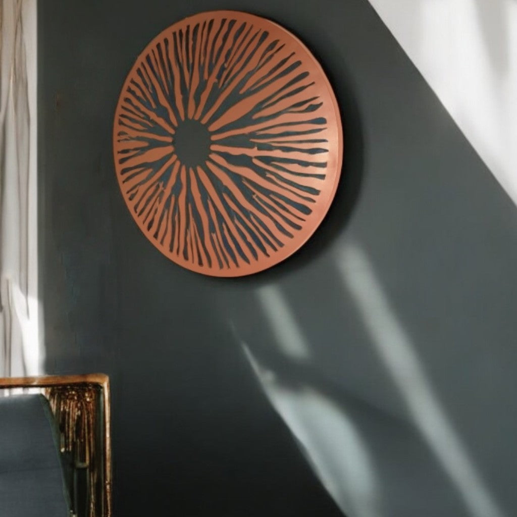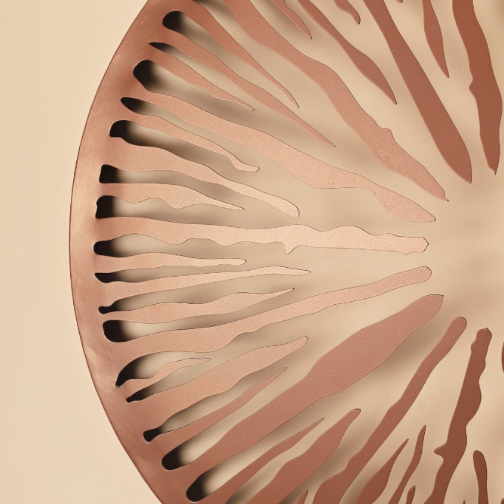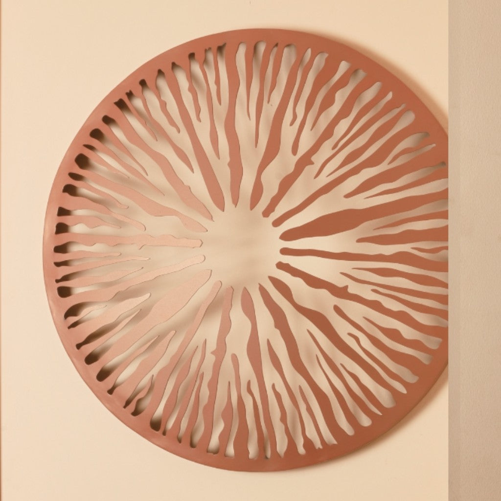 İç kısmındaki lazer kesim dalgalar özel olarak tasarlanmıştır. Daire formundaki demir levha el işçiliğiyle şekillendirilmiştir.