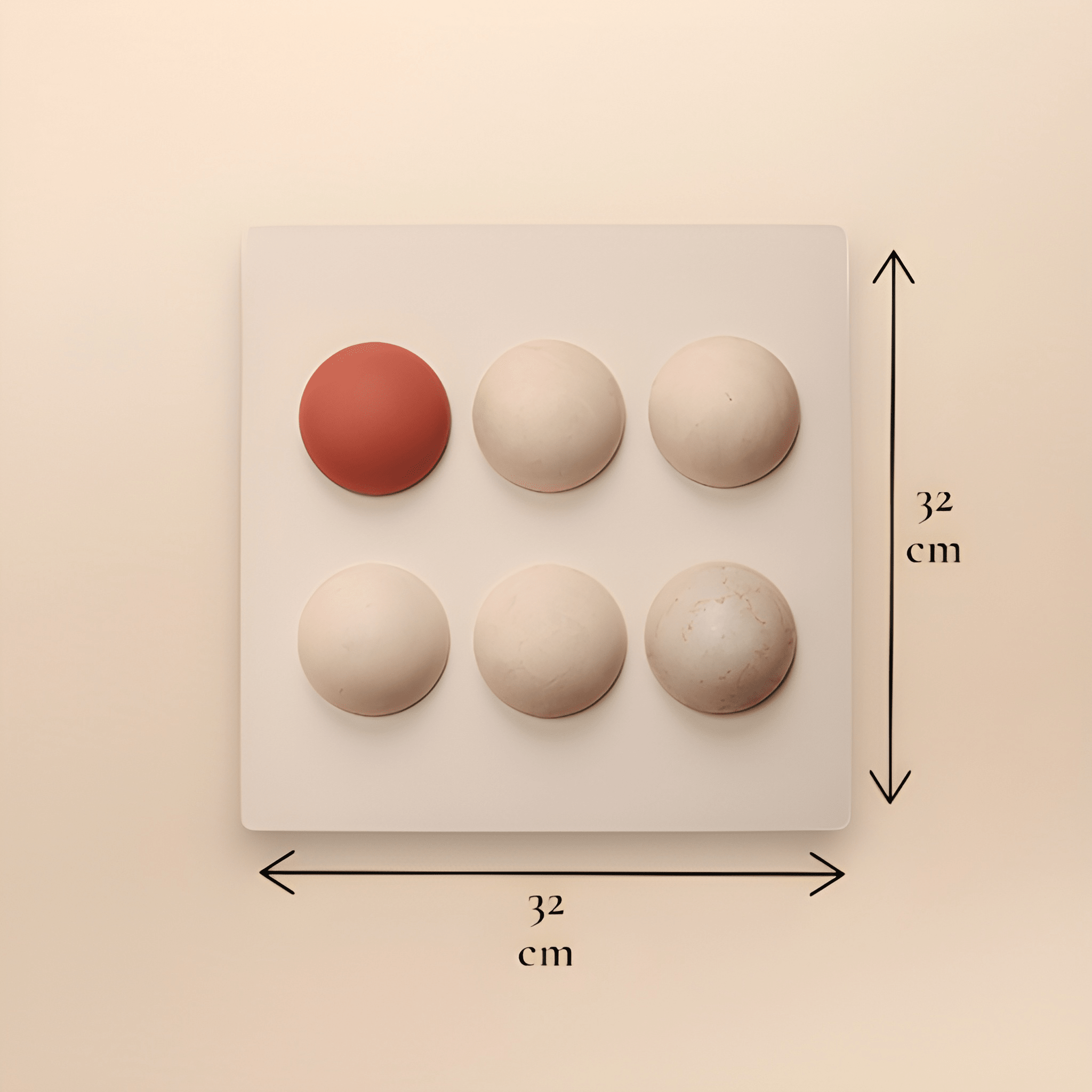 5 adedi doğal taş görünümünde, 1 adet kiremit renginde boyanmış “Wallipop” ürünlerinin yerleştirilmiş olduğu 32x32 cm ahşap kare panodur.
