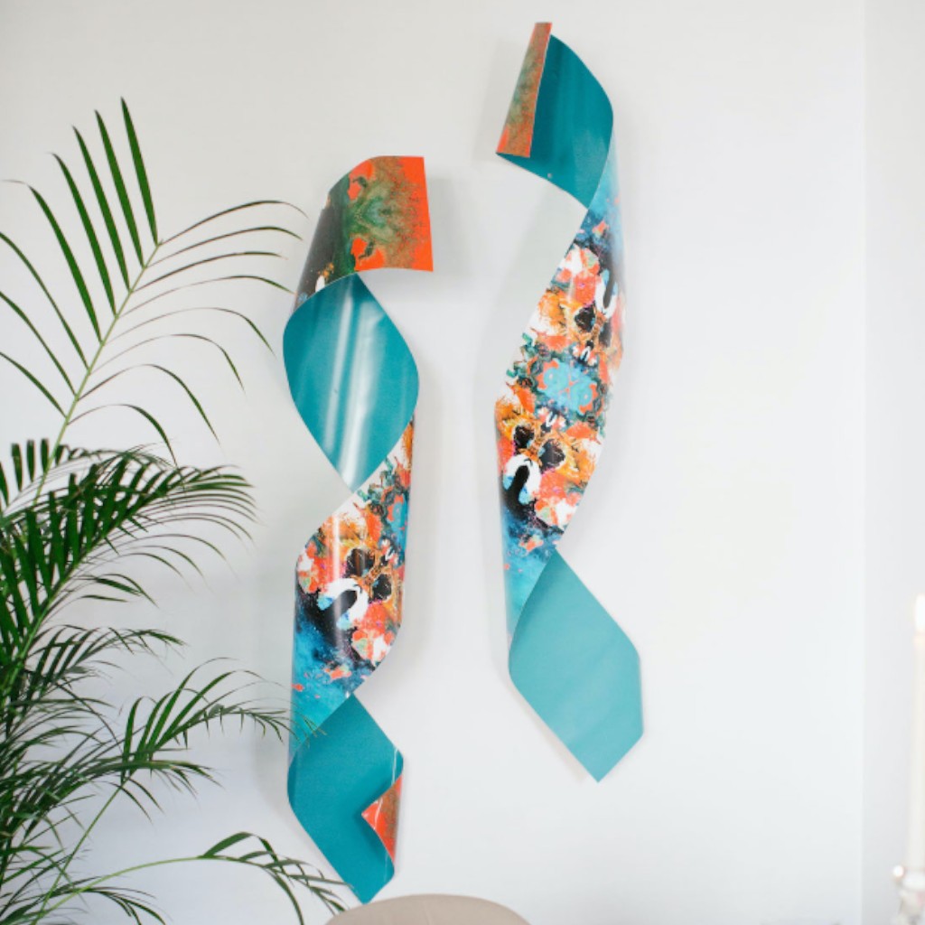 Bükülebilir alüminyum levha, el ile şekillendirilmiştir. Üzerindeki görsel Ressam Melis Önalan Altıparmak'a aittir. Resmin detayı dijital ortamda tekrar yorumlanarak levhaya basılmıştır. 2’li setten oluşmaktadır.
