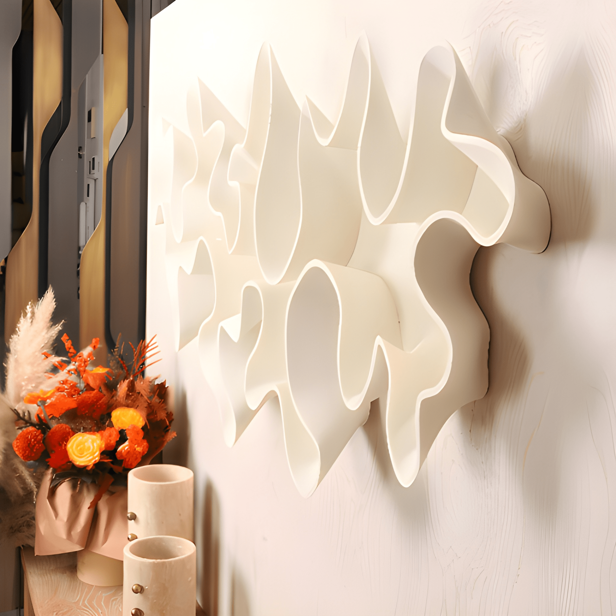 Duvara monte edilerek heykelsi bir vurgu öğesi olarak kullanılabilir; hem modern hem de doğal çizgileriyle bulunduğu ortama özgün bir karakter kazandırır.