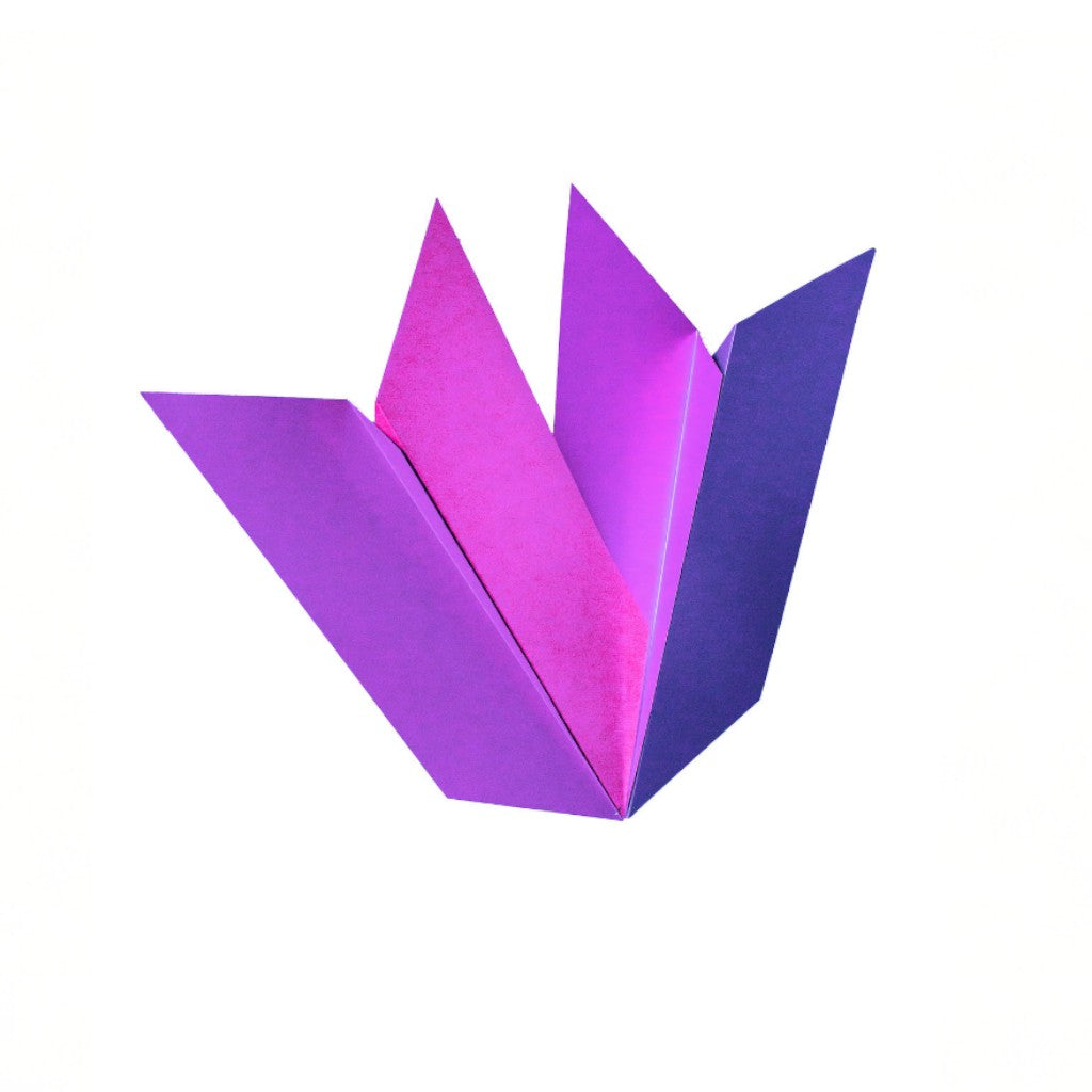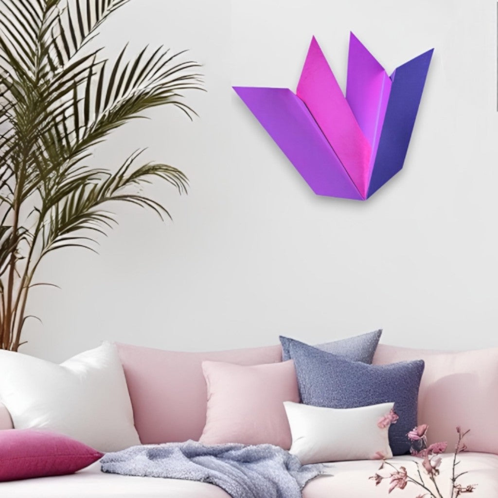 Pembe tonları ile lila ve mor renklerinden oluşan elektrostatik boyalı metal formlardan oluşan kompozisyondur.