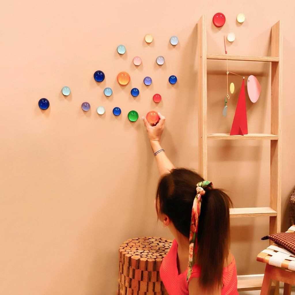 Pakette pembe, turuncu, mavi, yeşil ve nar çiçeği tonlarında üç boy yarım küre bulunur. Reçine özlü malzemeden oluşturulmuş yarım kürelerin renklendirilmeleri taban kısmından olup dış yüzeyinde boya bulunmamaktadır. 32'li settir.