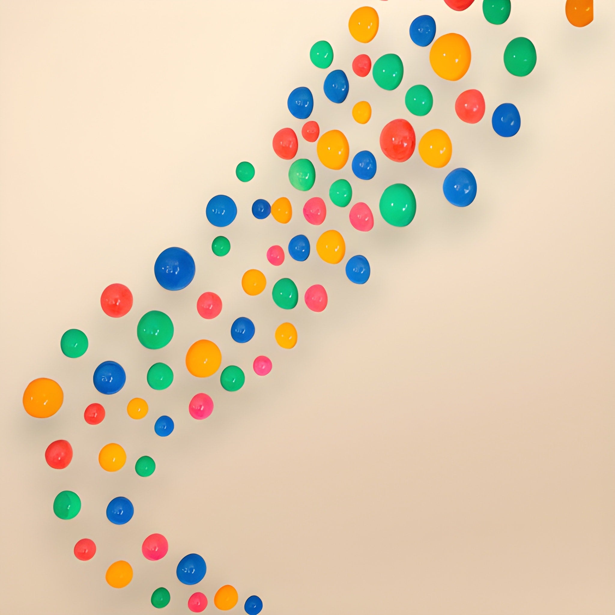 Pakette karışık neon renkli, 3 boy yarım küre bulunur. Doğal özlü malzemenin sertleştirilmesi ile kırılmaz hale getirilmiş yarım kürelerin, renklendirmesi iç yüzeyden yapılmış olup dış yüzeyinde boya barındırmadığından çocuk odası dekoru için de uygundur. 32'li settir.