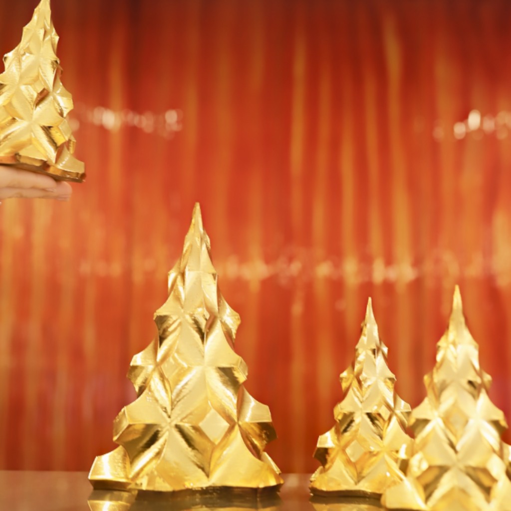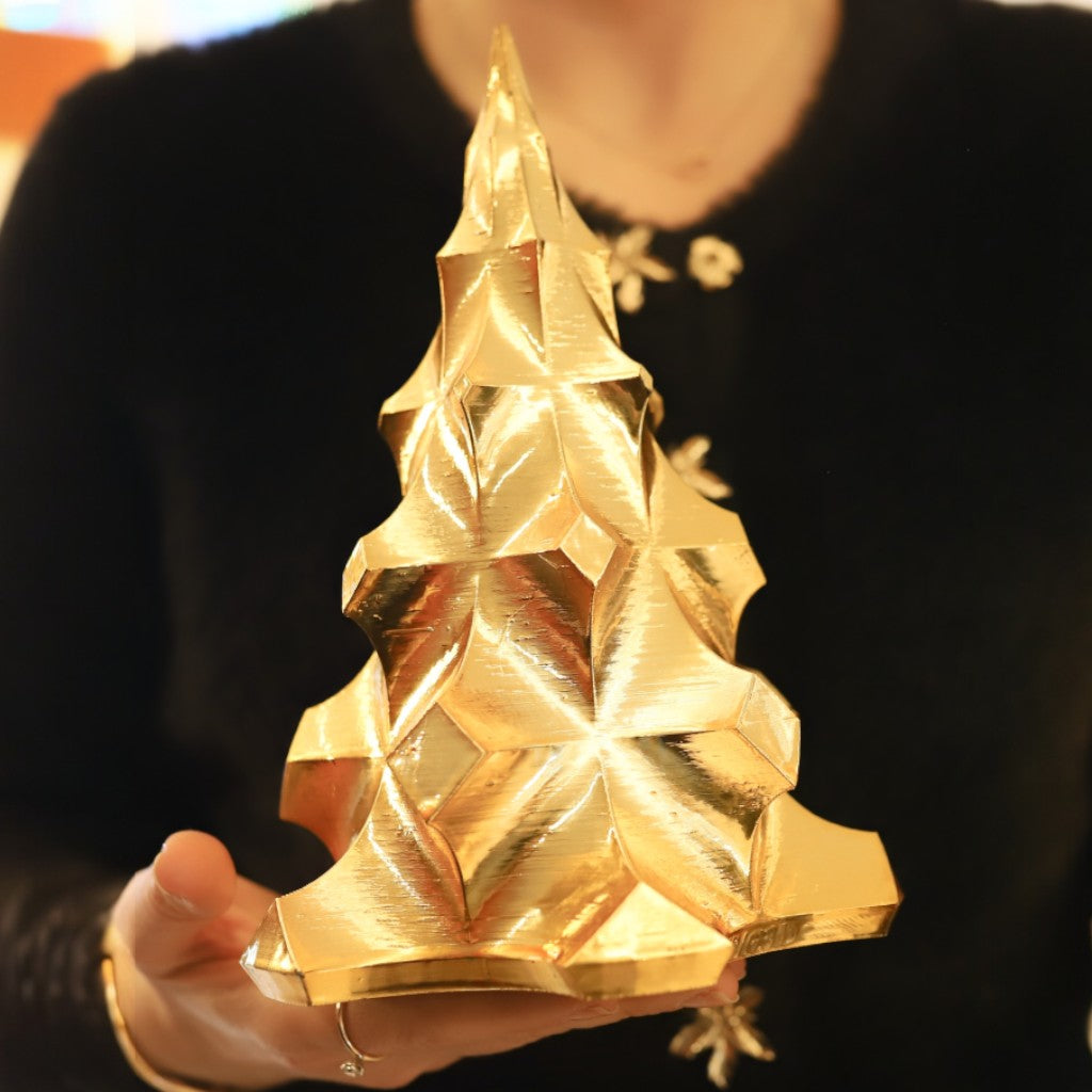 PLA plastik malzemeden üretilmiş özel tasarım yılbaşı çamı masa dekorudur. Yeni yıl yemeğinizde sofralarınıza dekor olarak veya iş yerleri ortak alanlarınızın süslemelerinde, kitaplıklar veya dresuarlarınızda kullanabilirsiniz.